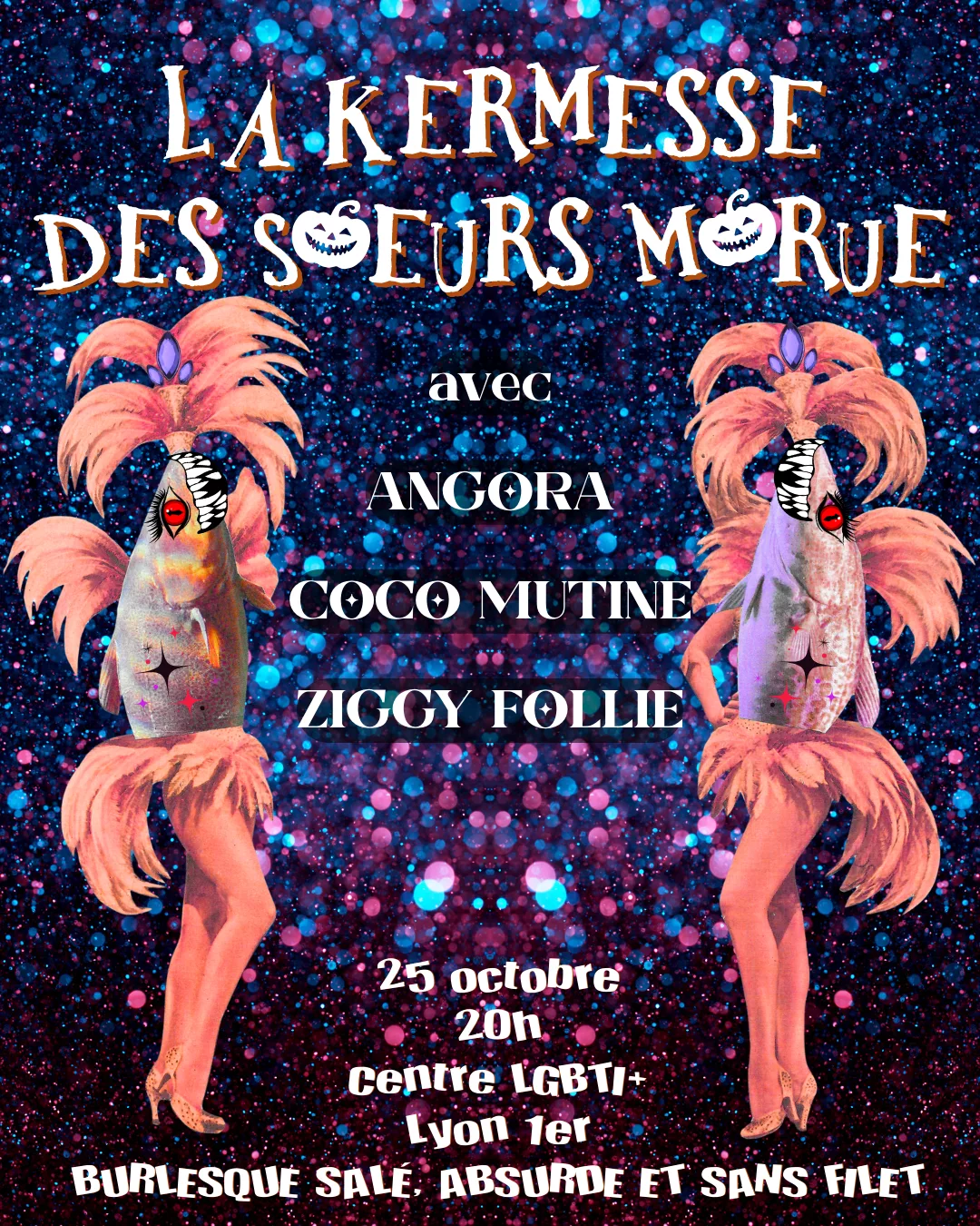 Préparez-vous pour une soirée burlesque salée, absurde et sans filet concoctée par Lady Dada et Zazou Minaude ! Pour leur première kermesse, les Soeurs Morue n’ont pas vu l’aquarium à moitié vide et vous proposent un show Halloween des Abysses. Pour cette occasion, les Morue ont invité leurs ami.e.s subaquatiques pour nager la sarabande endiablée […]