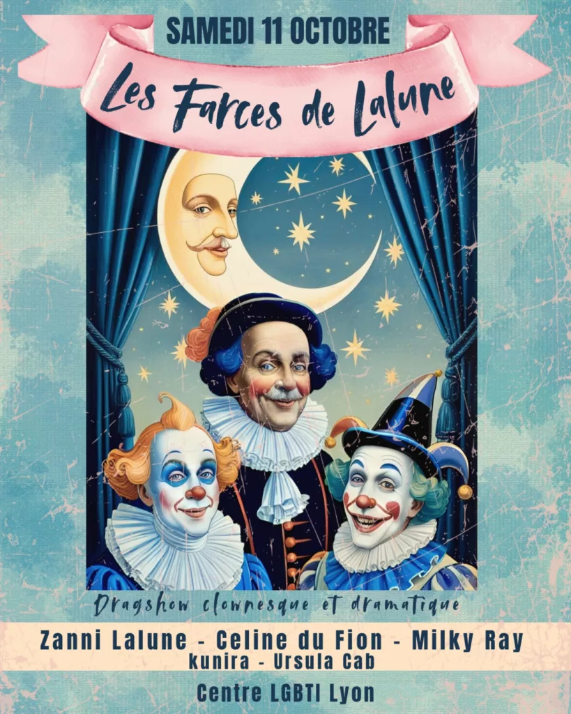 Les Farces de Lalune seront de retour le Samedi 11 octobre 2025 ! Ouverture des portes à 20h00 et début du show 21h00. Les Farces de Lalune – Dragshow clownesque et dramatique Accueillez sur la piste Pierrots, Augustes et Arlequins. Ici les clowns colorés se rassemblent en farandole pour un show comique ou dramatique, mais […]