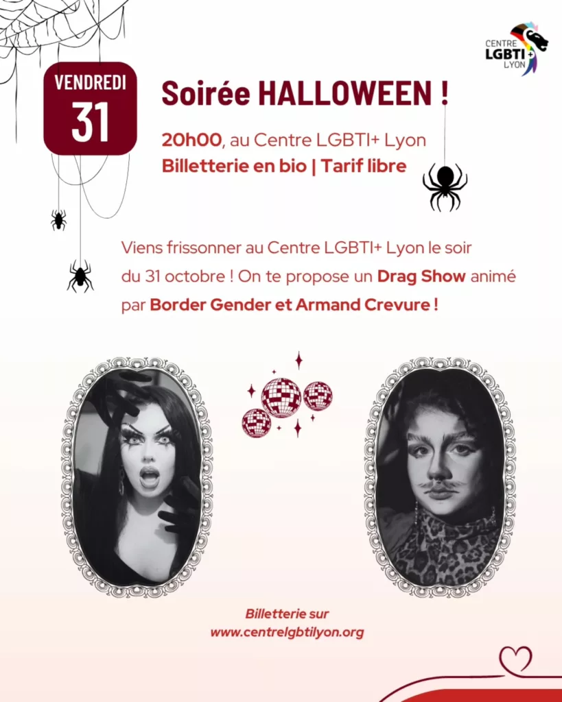 Une soirée conviviale organisée par la Commission Jeunes du Centre LGBTI+ Lyon dans une ambiance d’Halloween ! Au programme : A partir de 19h00 au Centre LGBTI+ Lyon ! Evénement réservé aux jeunes de 16 à 25 ans.