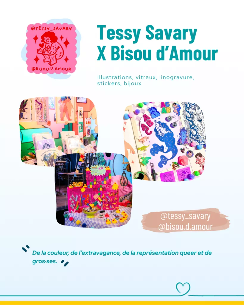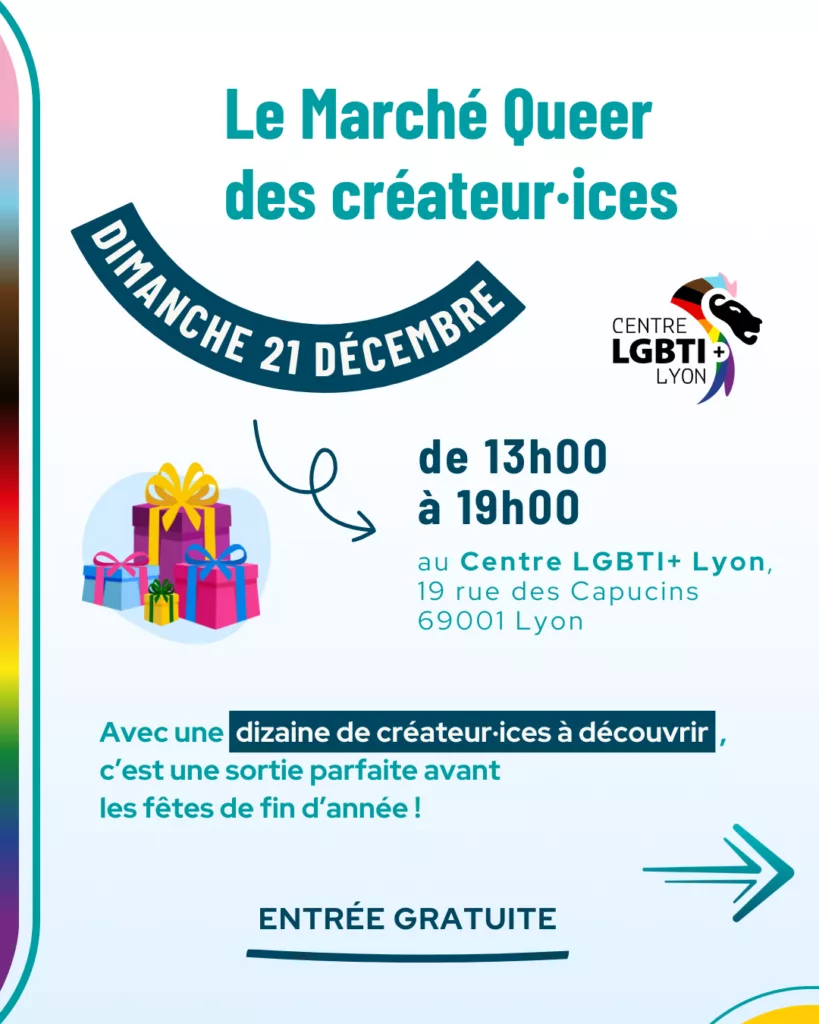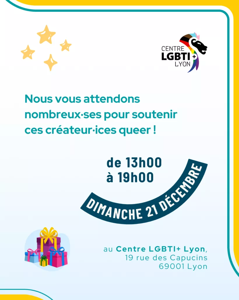 Venez dĂ©couvrir ou re-dĂ©couvrir une dizaine de crĂ©ateurâąices queer de 13h Ă 19h, le dimanche 21 dĂ©cembre, afin de soutenir les artistes queer et trouver de petites idĂ©es cadeaux pour soi ou pour les autres đ„°