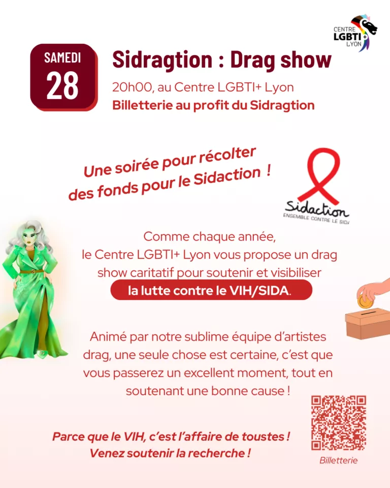 Comme chaque année, le Centre LGBTI+ Lyon vous propose un drag show caritatif pour soutenir et visibiliser la lutte contre le VIH/SIDA.